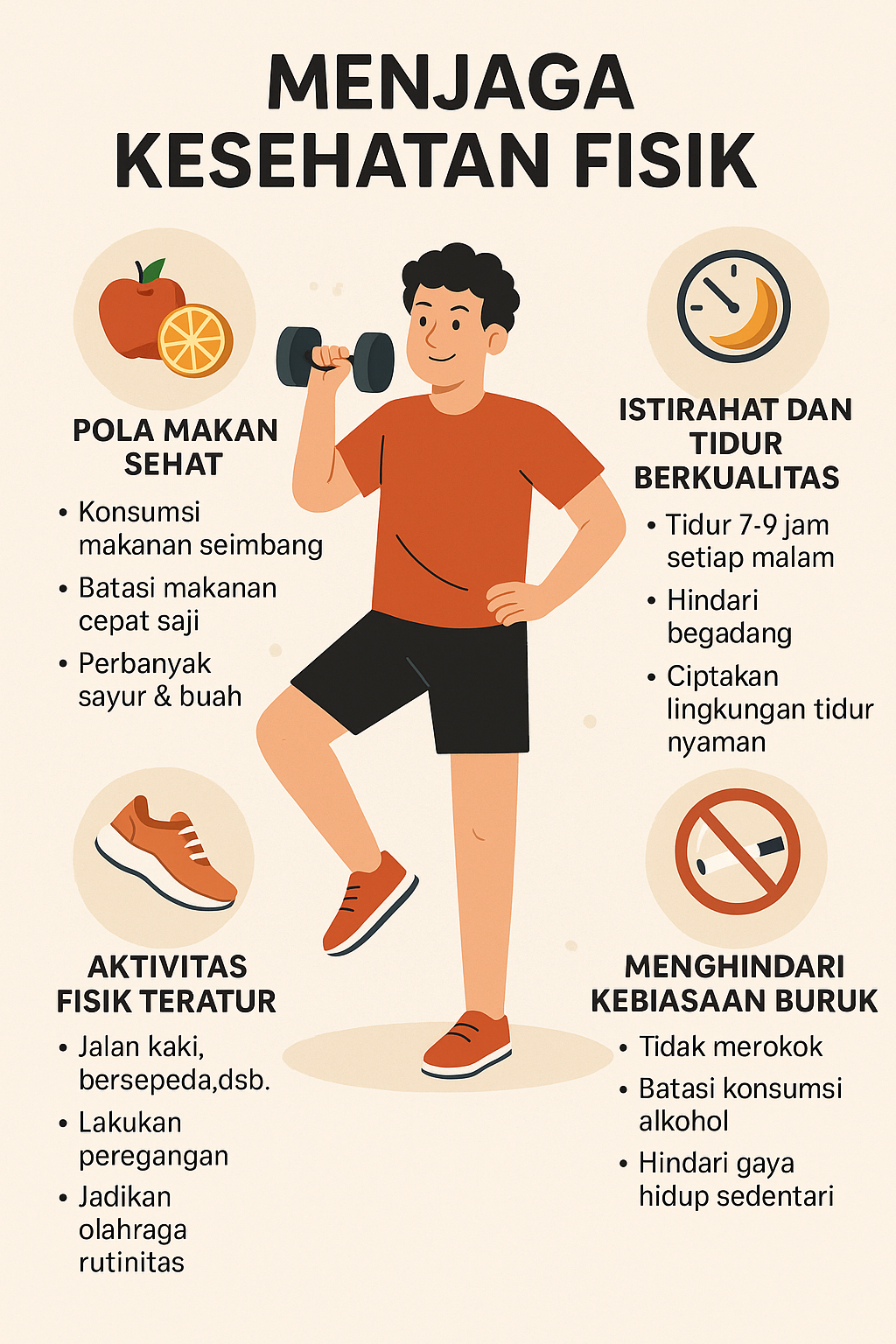 Kebiasaan sehat – menjauhi rokok, alkohol, dan pola hidup yang merusak tubuh.